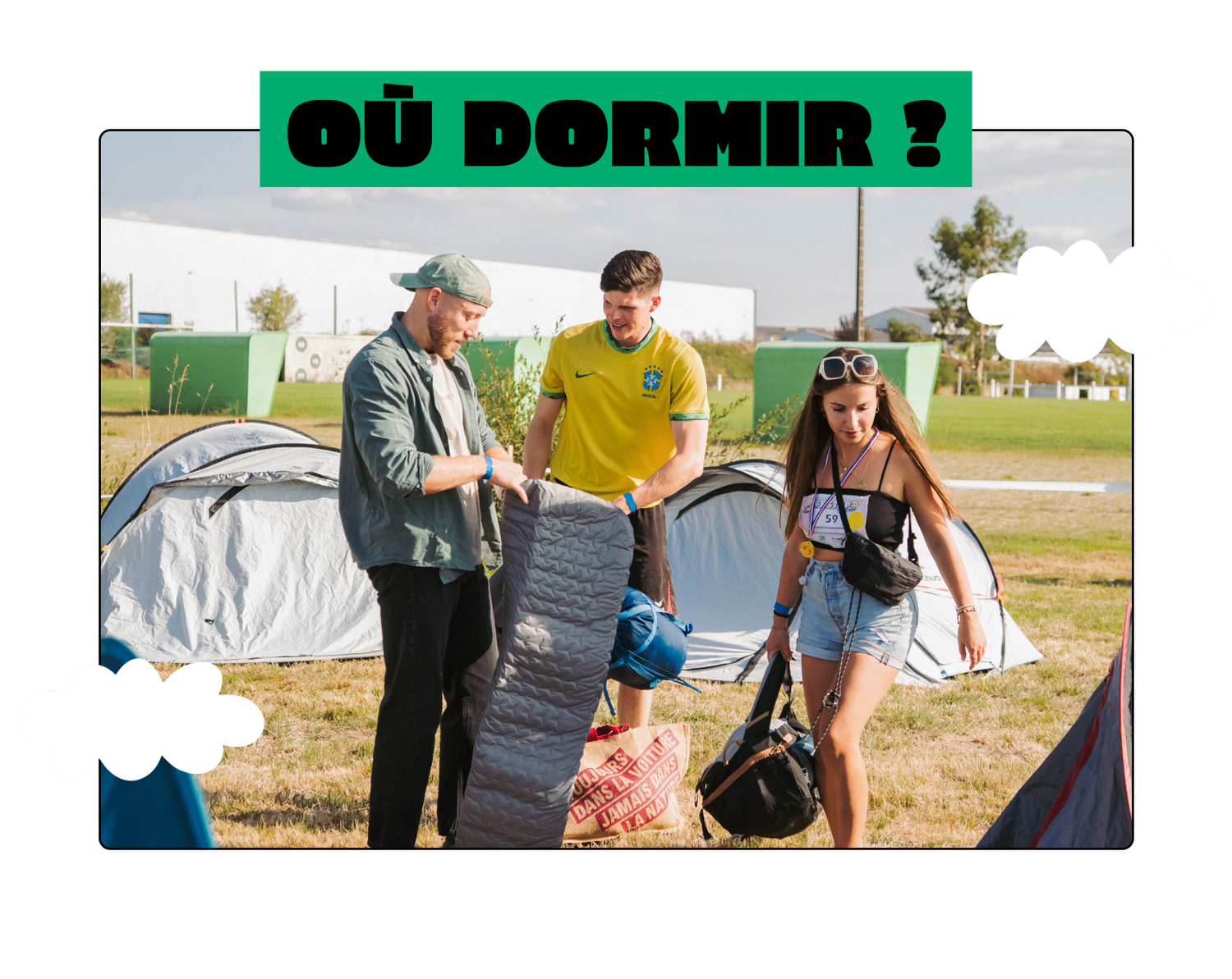 Un camping gratuit sur le site du festival est inclus dans ton pass, alors installe ta tente et profite de l’ambiance jusqu’au bout de la nuit !❌ Objets interdits