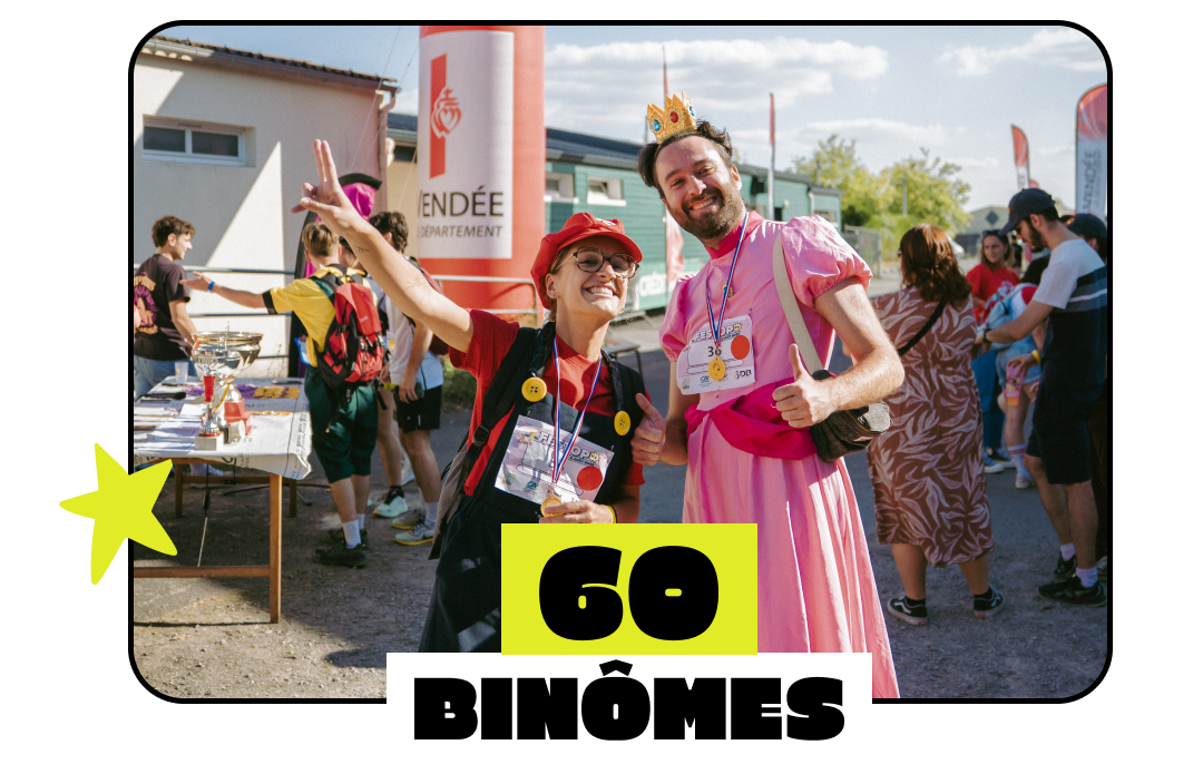 Un immense merci pour votre engouement. Cette année, 64 binômes s’élanceront dans une course d’autostop à travers la Vendée, ponctuée de missions et de défis, le tout encadré par nos bénévoles.